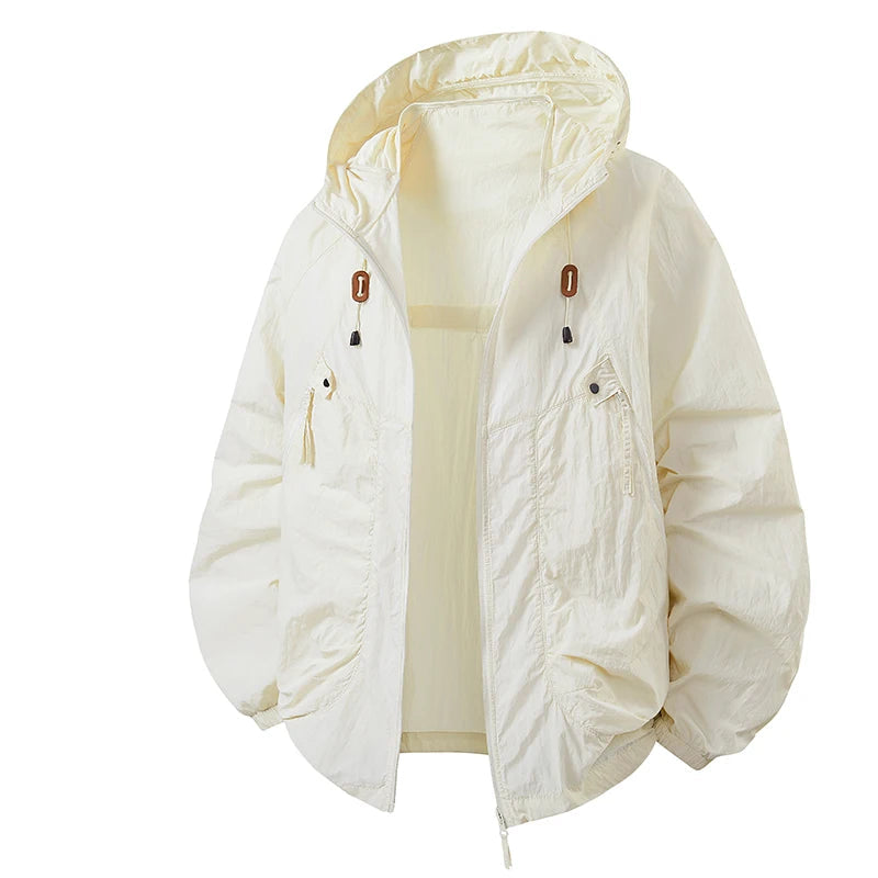 With a sleek full-zip design and functional pockets, this jacket balances performance with modern style. Its thin construction makes it easy to layer and pack, making it an ideal companion for travel, commuting, hiking, or everyday wear.