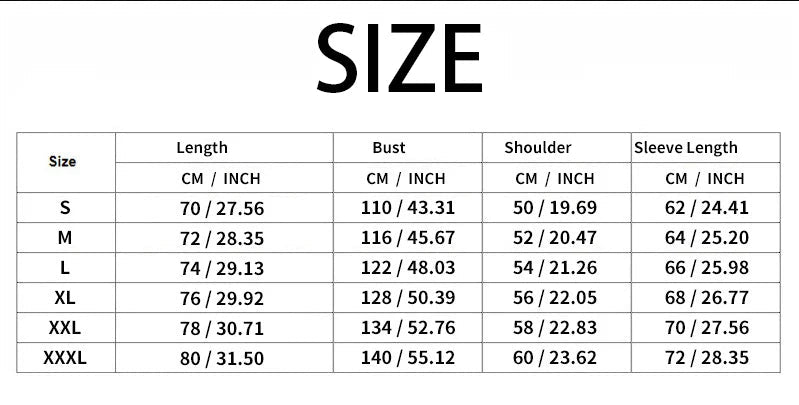- Sizes: S-3XL
