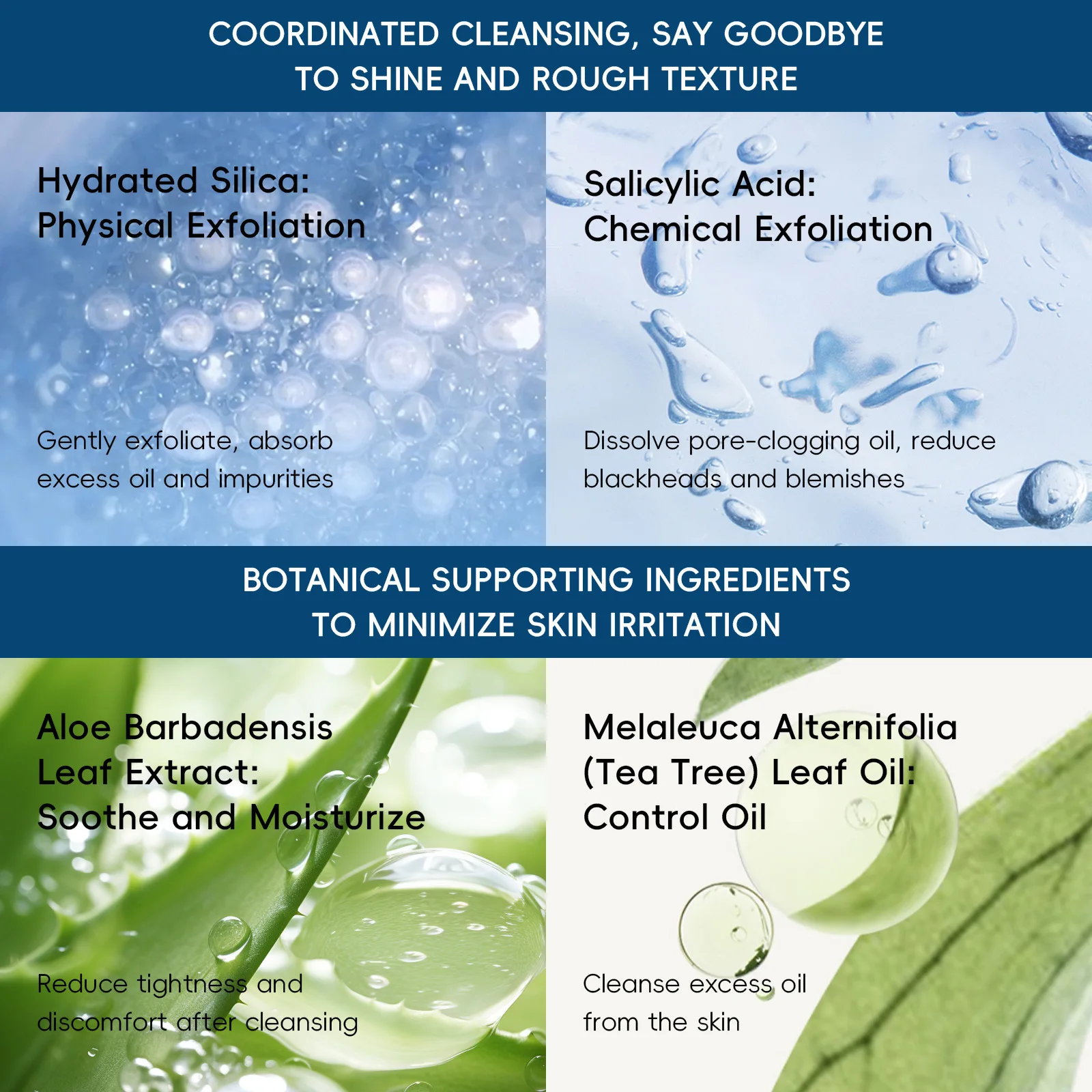 2-in-1 cleansing and exfoliating massage in to cleanse pores and remove impurities