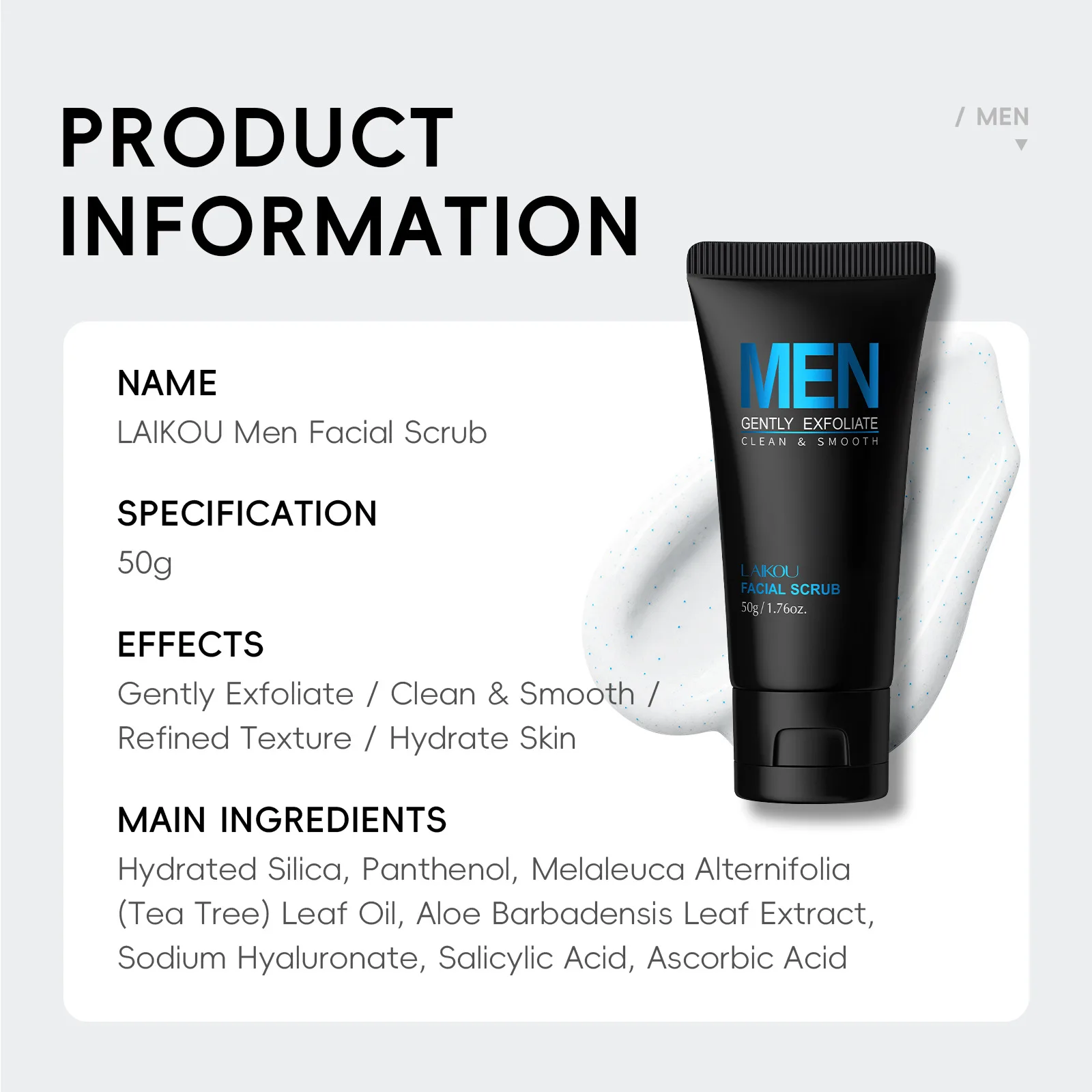 LAIKOU Men Facial Scrub 50g 2-In-1cleansing And Gently Exfoliate Soften Skin Improve Clogged Pores Hydrate Skin