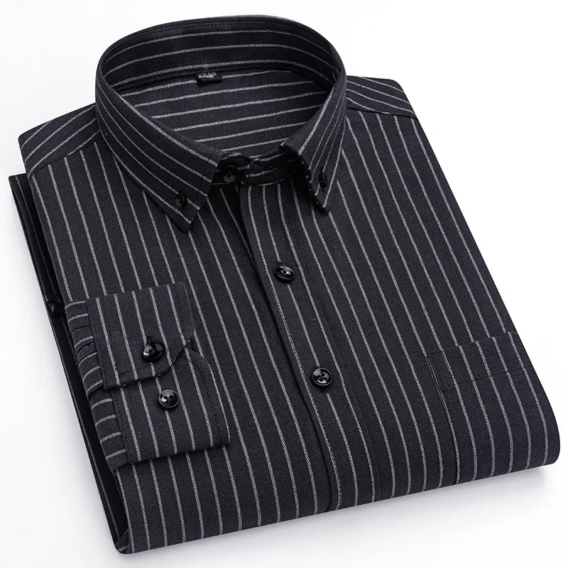 The men’s long sleeve polo is made from high-quality cotton with an Oxford fabric finish, ensuring durability, breathability, and a comfortable fit. Its single-breasted closure adds a clean and polished touch, making it suitable for both casual and semi-formal settings.