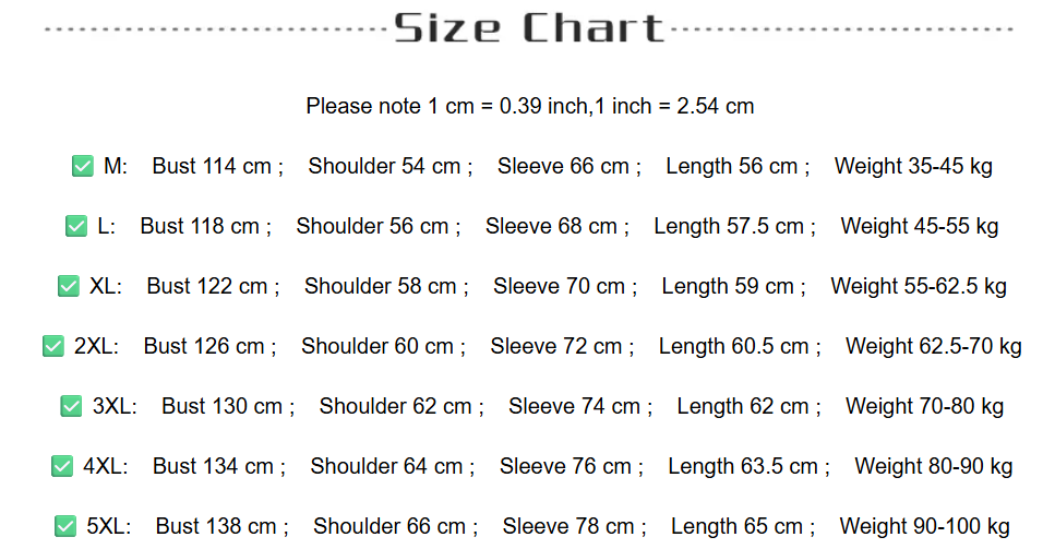 - Sizes: M-5XL